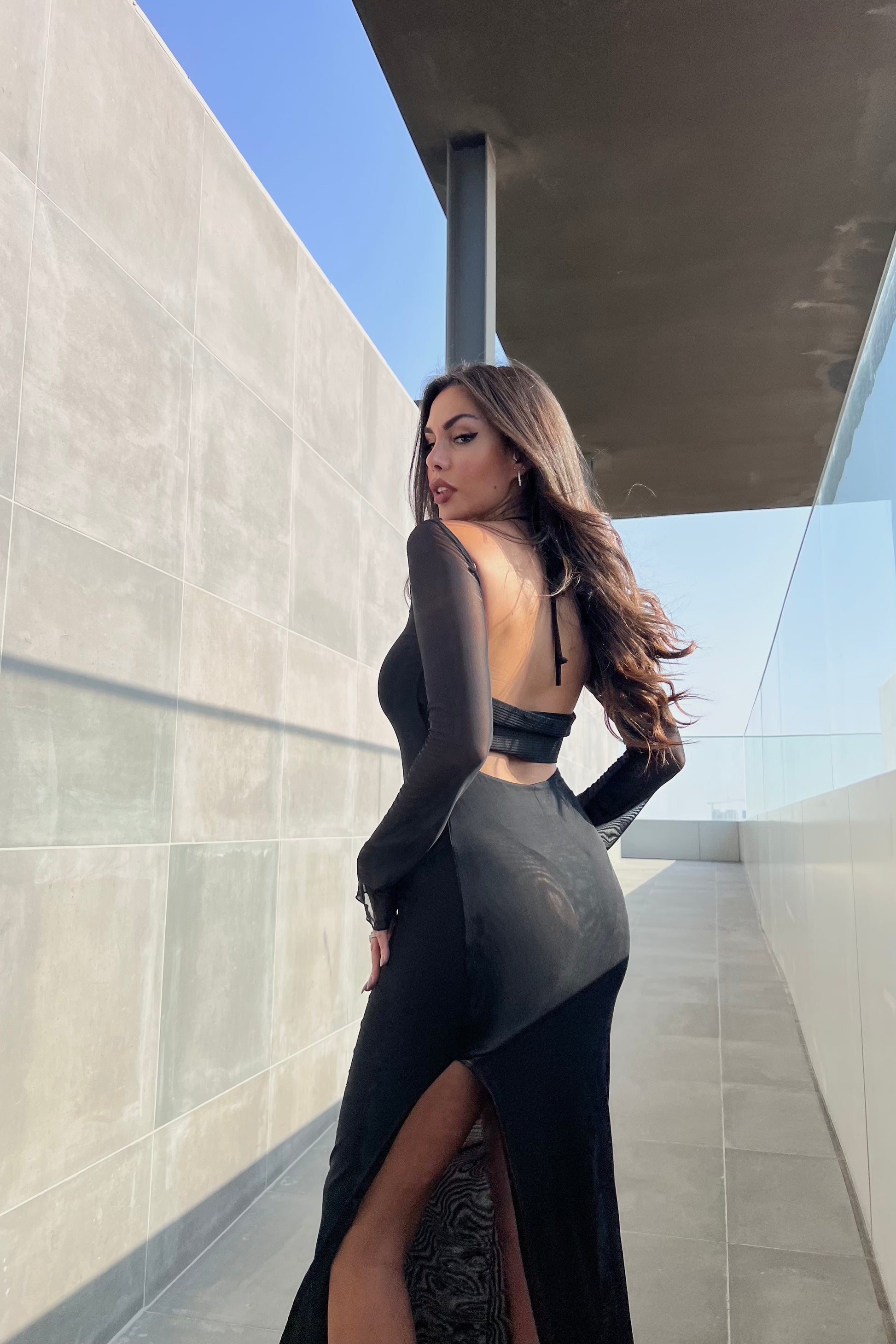 Exprimez votre personnalité avec notre robe Luna. Cette superbe robe transparente, dotée de manches longues et d'une coupe maxi fluide, est idéale comme paréo. Polyvalente et élégante, elle allie confort et style tout en apportant une touche glamour à vos tenues de plage ou de piscine.