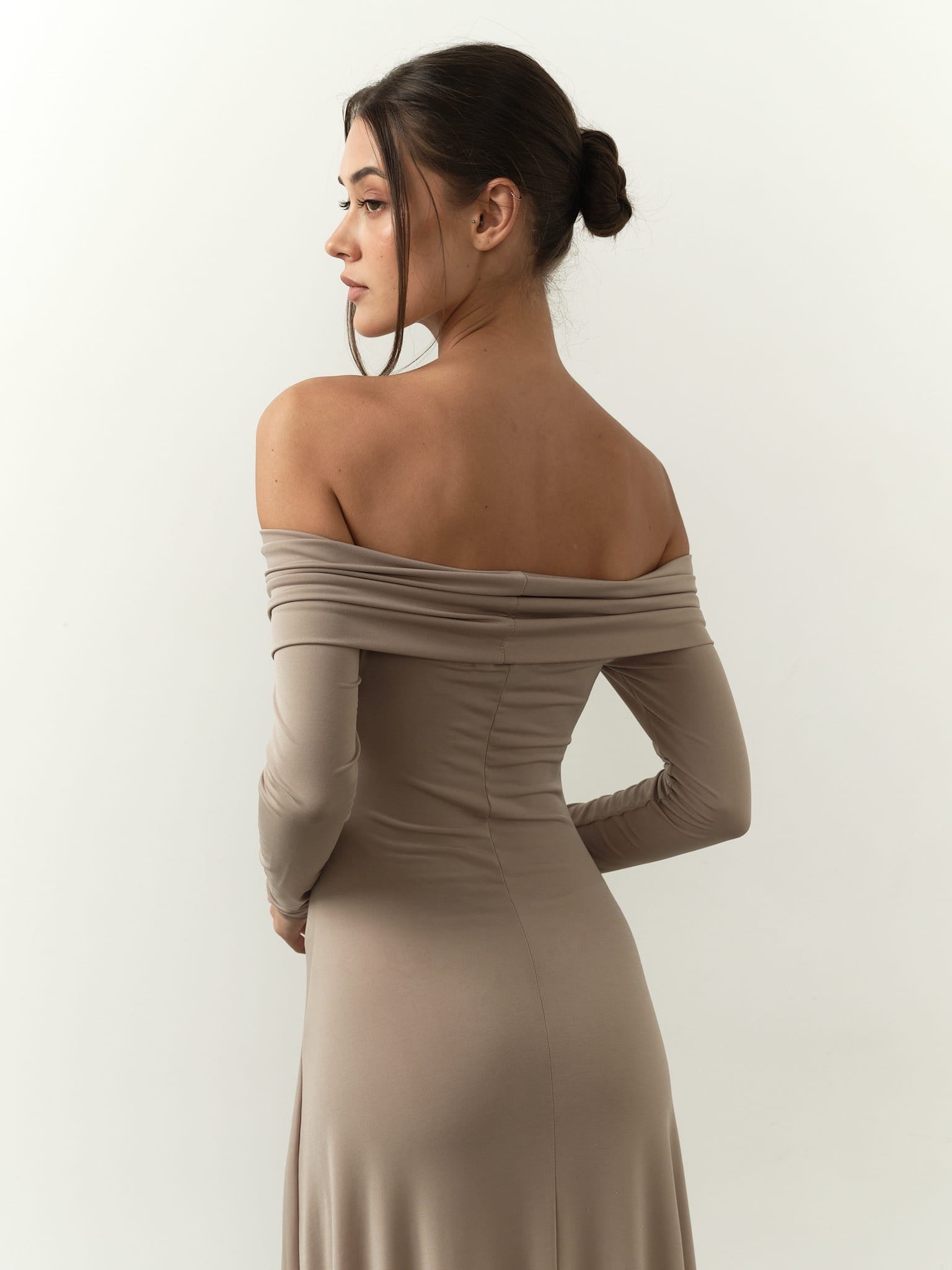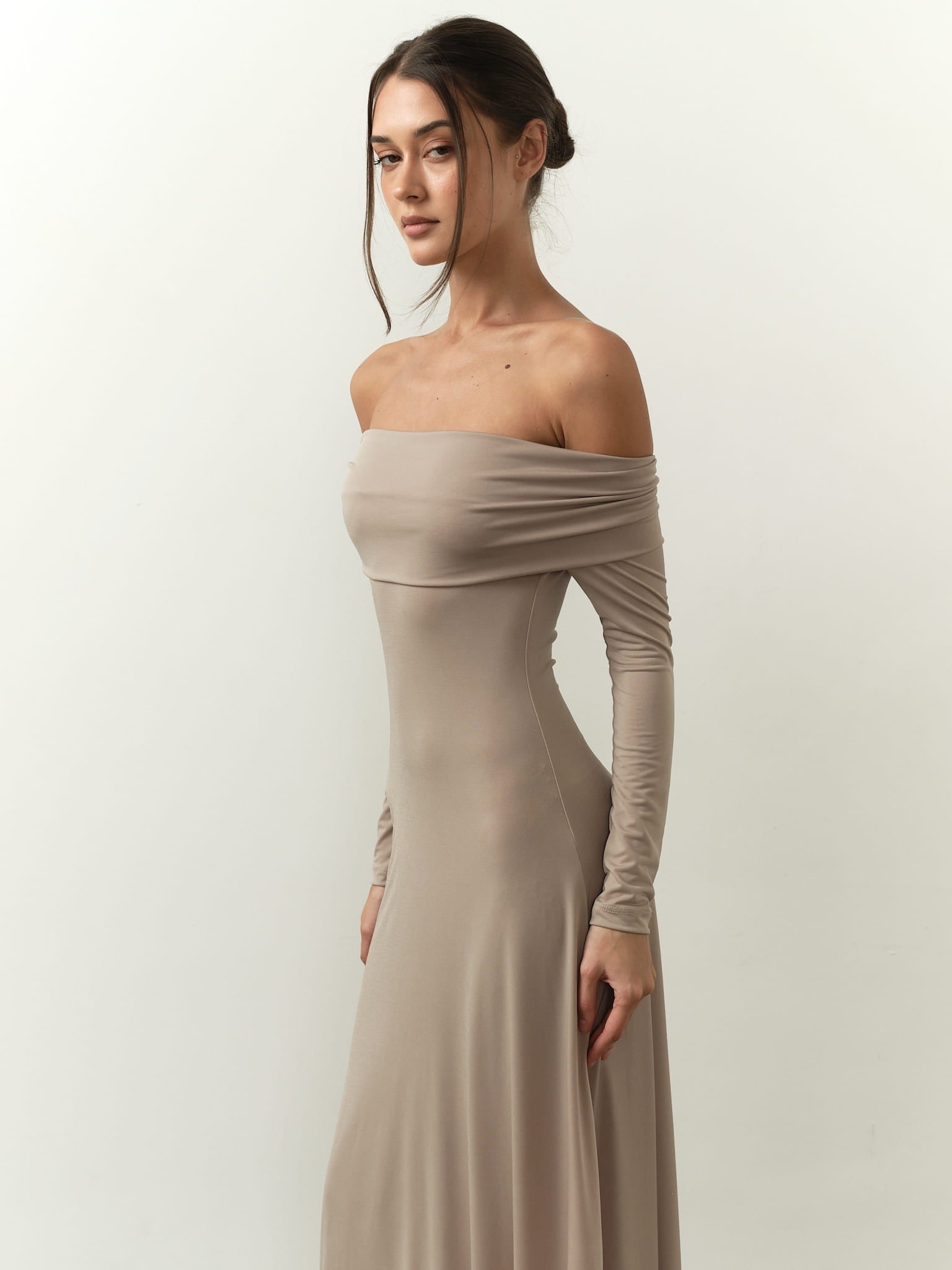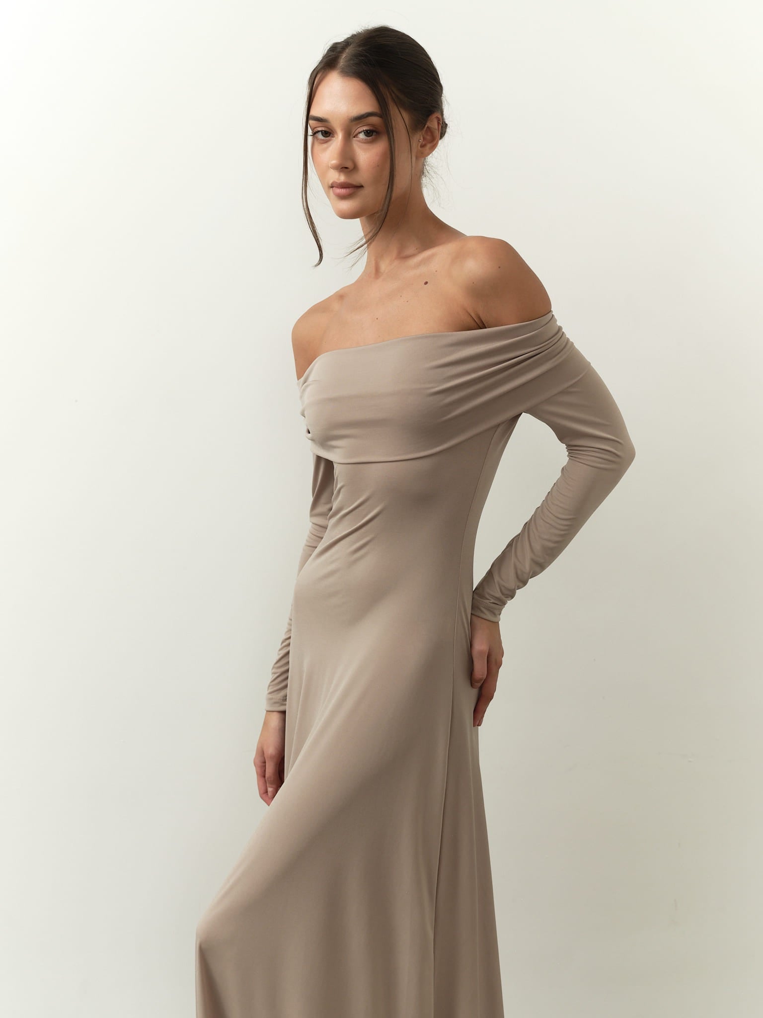 Affirmez votre style avec la robe longue Otis à épaules dénudées, un mariage parfait d'élégance et de confort. Cette robe présente un décolleté épaules dénudées raffiné, de longues manches fluides et une longueur jusqu'au sol qui sublime votre silhouette. Idéale pour les soirées ou les sorties décontractées, la robe longue Otis est un incontournable de votre garde-robe.